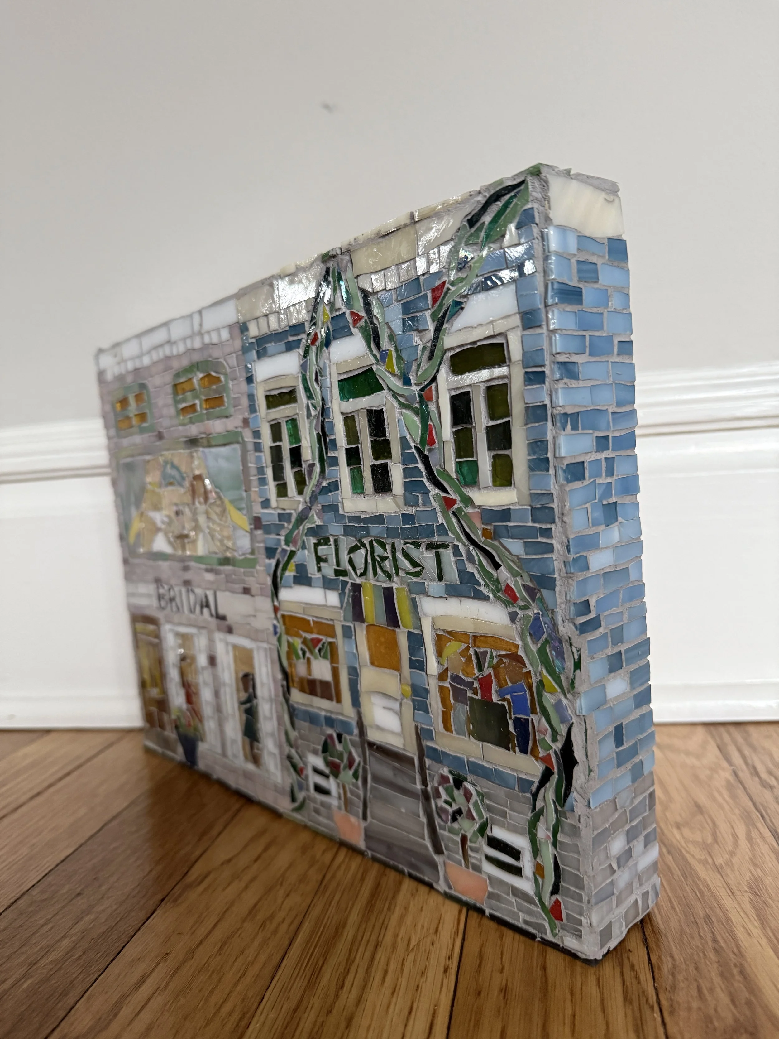 Store Charming Townhouse Mosaic Art $150.00 Sold out Sold Out Added! Charming Street Scene Mosaic Art $700.00 Add To Cart Added! Blue Coffee Shop $150.00 Sold out Sold Out Added! Bridal Shop / Florist Mosaic $500.00 Add To Cart Added!
